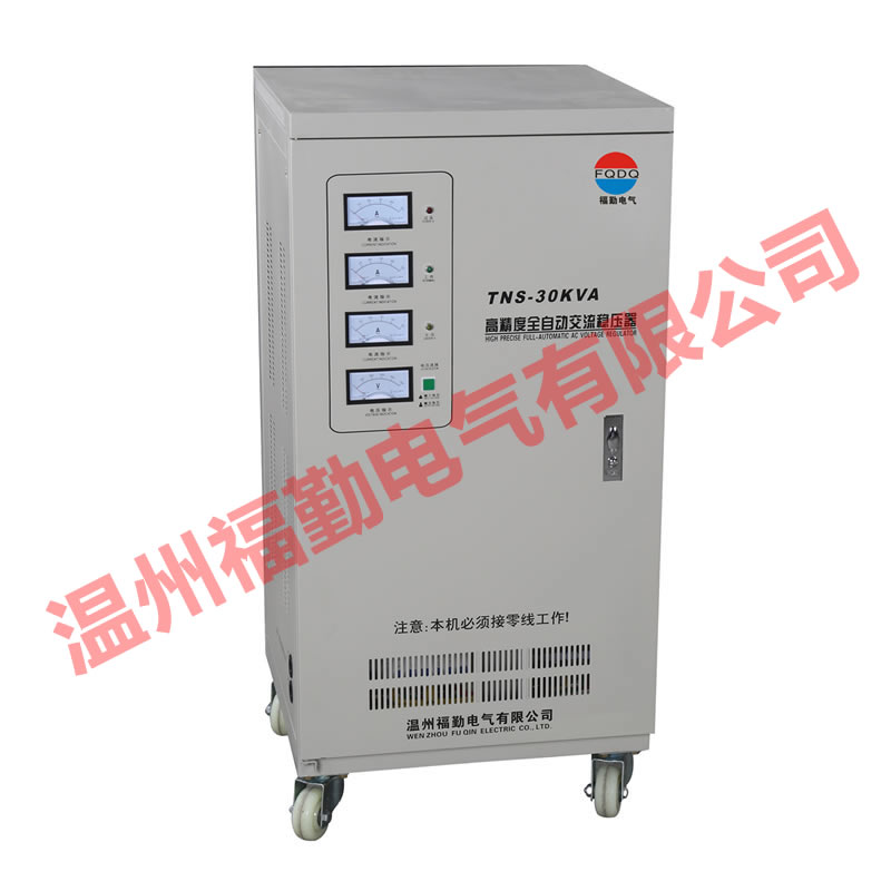 TNS系列三相高精度全自動交流穩(wěn)壓器是單相系列高精度全自動交流穩(wěn)壓器的組合.電網(wǎng)輸入為三相四線制,星形(Y形)接法,輸出亦為三相四線制,由兩只電壓表分別指示輸入與輸出電壓,分?jǐn)?shù)顯與指針式。